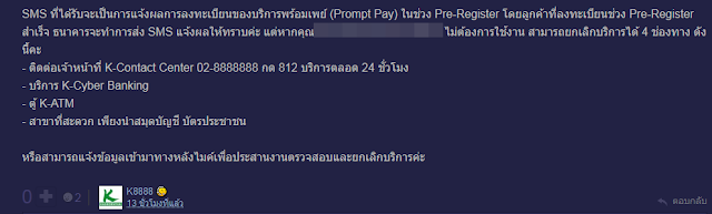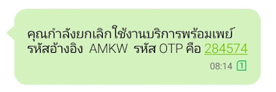 หลังจากบริการพร้อมเพย์ (Prompt Pay) เปิดให้สมัครผ่านมือถือ ผ่าน Cyber Banking หรือตู้ ATM ของธนาคารต่างๆ หลังจากนั้นข่วงนี้ก็มีทั้งคนที่สมัครเอง เผลอไปสมัคร หรืออื่นๆ แล้วอยากยกเลิก เพราะกลัวนั่น นี่ หรือยังไม่พร้อมใช้งาน จากนั้นจะมี sms แจ้งมาตัวอย่าง
