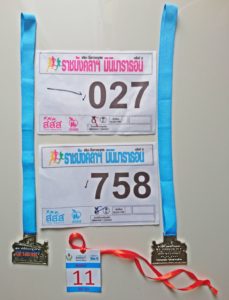 วันงานเราออกเดินทางจากที่พักประมาณตี 5 เนื่องจากไม่ไกลจากที่พักมากนัก ประมาณ 20 นาทีจากลาดกระบัง ไปถึงก็รับเสื้อ แต่ปัญหามันอยู่ที่ เจอเสื้อและ bib ของแฟนคนเดียว ของผมเองเจ้าหน้าที่หาไม่เจอ ( เป็นงานที่ 2 ที่ไปรับหน้างานแล้วเสื้อกับ bib หาย ) แต่เจ้าหน้าที่ก็แก้ไขเฉพาะหน้าเอา bib และเสื้อสำรองให้ หมดปัญหา