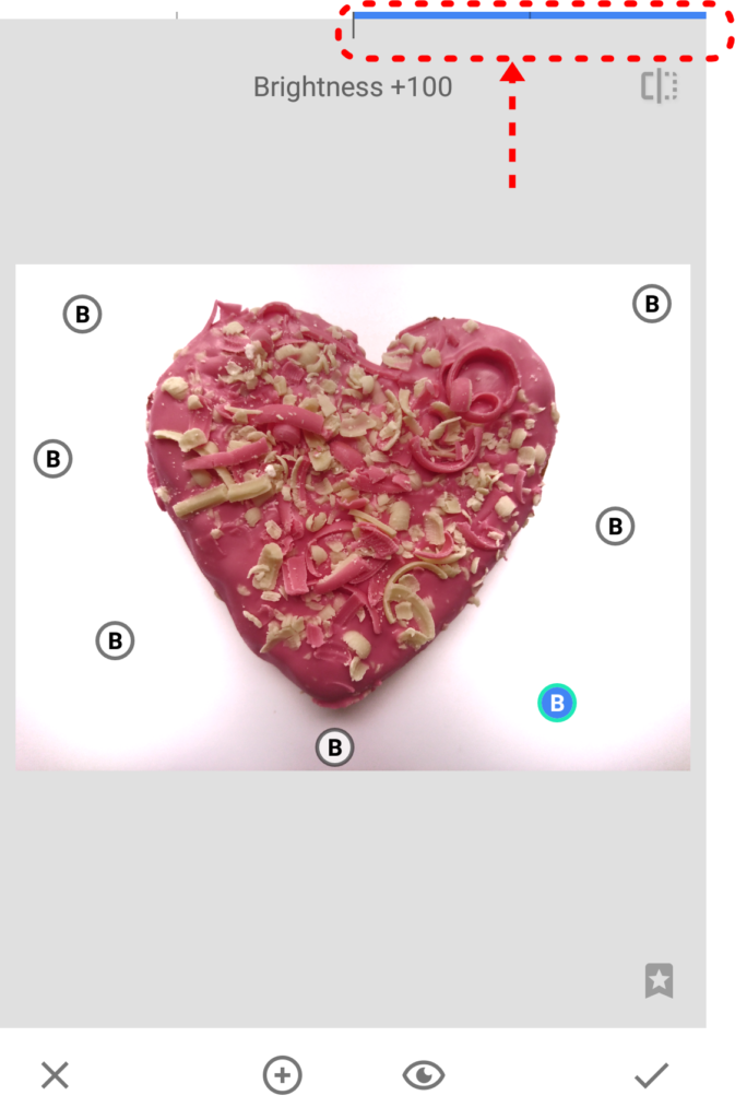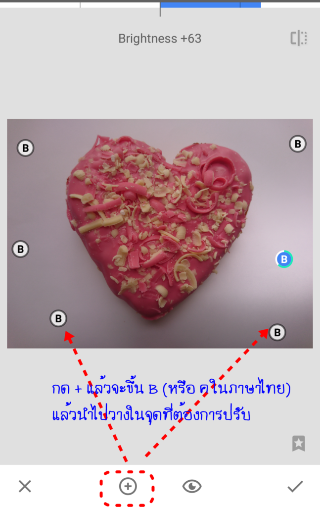 3. มาต่อ หลังจากเราเปิดภาพที่ต้องการแก้ไขมาแล้ว ด้านล่าง เราจะเห็นเครื่องหมายบวก + ให้เรากดที่เครื่องหมายบวก แล้วไปเลือกบนจุด หรือบริเวณภาพที่เราต้องการแก้ไข โดยสามารถเลือกวางหลาย ๆ จุดไว้ก่อน โดยเลือกให้ขึ้นตัว B (Brigthness) ถ้าเครื่องเราใช้ภาษาไทย รู้สึกว่าจะเป็นตัว ค (ความสว่าง)