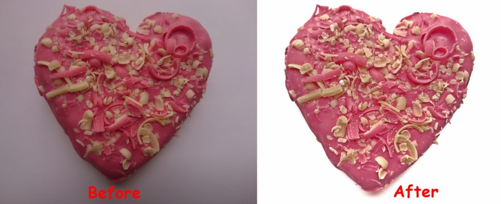 1. ให้เราเลือกรูปที่เราต้องการ โดยที่นี่จะเราทำพื้นหลังขาว รูปที่เราถ่ายมาก็ควรถ่ายบนพื้นหลังที่ขาวหน่อย เช่น บนกระดาษ A4 ตัวอย่างนี้ จะขอเอารูปโดนัทรูปนี้ ซึ่งถ่ายบนกระดาษ A4 แต่จะเห็นว่า ด้วยกล้องมือถือเรา ภาพที่ออกมาพื้นหลังมันก็ไม่ได้ขาว ออกจะหม่น ๆ คือถ้าไปโพสรูปนี้ใน Facebook ก็จะไม่สวยดึงดูดลูกค้า