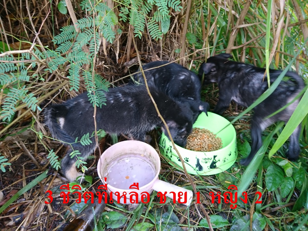 ในระหว่างที่เราเอาเจ้านำโชคมาดูแลก่อนส่งให้บ้านใหม่ เรากับแฟนก็ยังคงแวะเวียนไปให้อาหารเจ้าขาวกับลูกที่เหลืออีก 3 ตัวทุกวัน ช่วงนี้ฝนตกทุกวันบางวันตกหนักมากเราอดเป็นห่วงทั้ง 4 ชีวิตแม่ลูกครอบครัวนี้ไม่ได้เลยจริง ๆ บางวันไปไม่เจอเลยสักตัวฝนตกแบบนี้ไม่รู้มีคนเอาเศษอาหารไปให้กินบ้างไหม เราเอาอาหารเม็ดกับน้ำสะอาดติดรถไปทุกวัน ถ้าวันไหนไม่เจอก็ไม่ได้เทอาหารกับน้ำไว้ให้ เพราะเดี๋ยวจะกลายเป็นอาหารเสียเปล่า ๆ