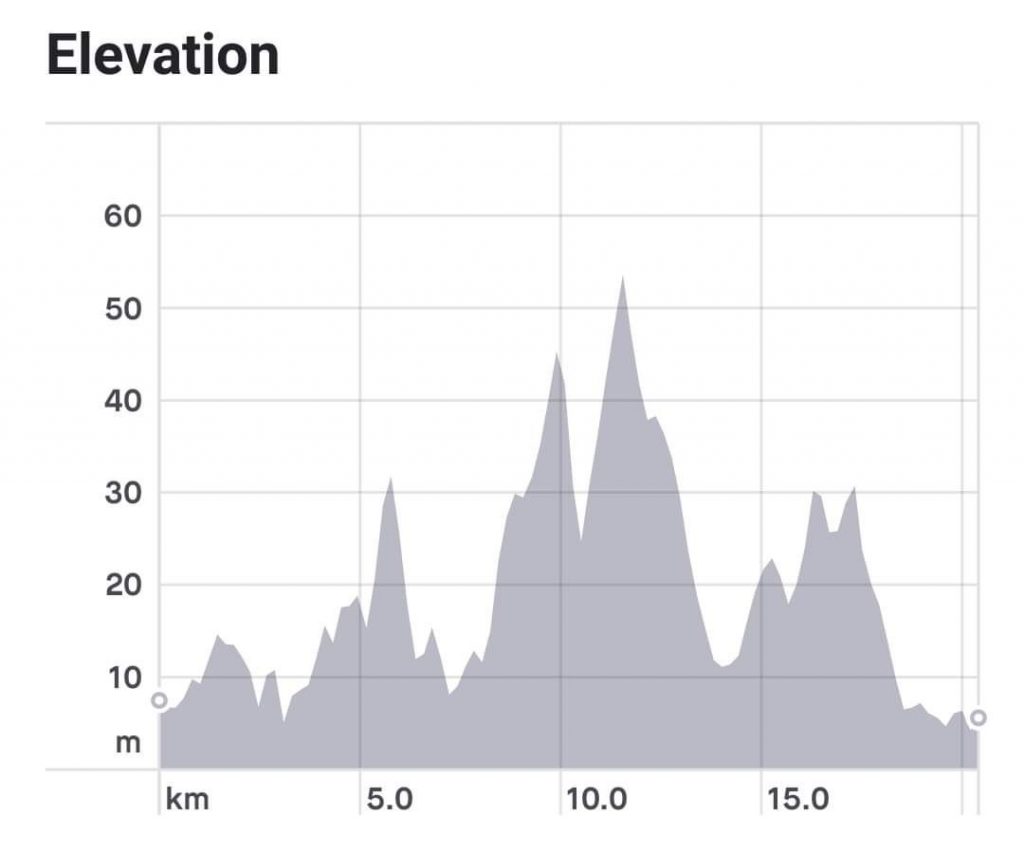 อย่างที่บอกว่าเส้นทางวิ่งจะเป็นทางเรียบ สลับกับเนิน ตลอดระยะทาง 21km. บางจุดก็จะเป็นเนินสูงหน่อย เช่น เนินจากแยกตลาดเก่าไปตลาดนัดควนสะตอช่วง 10-11km. และเนินตรงหน้าการไฟฟ้าช่วง 14-15km.