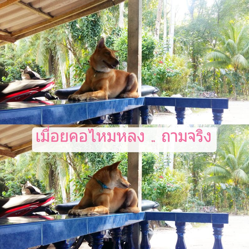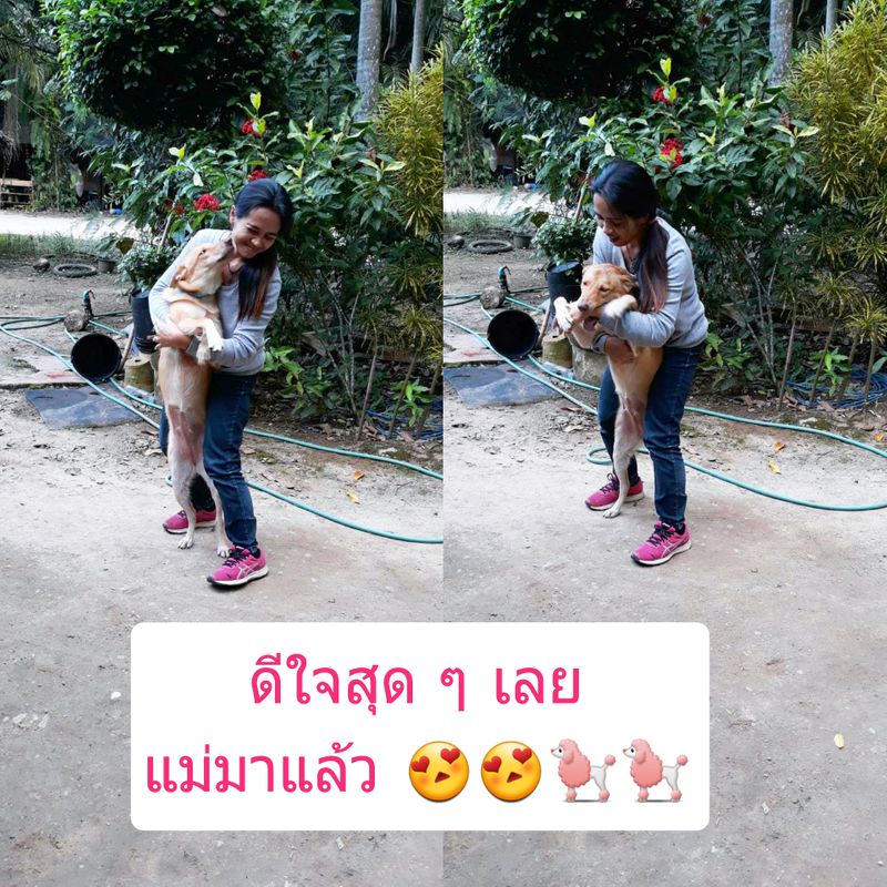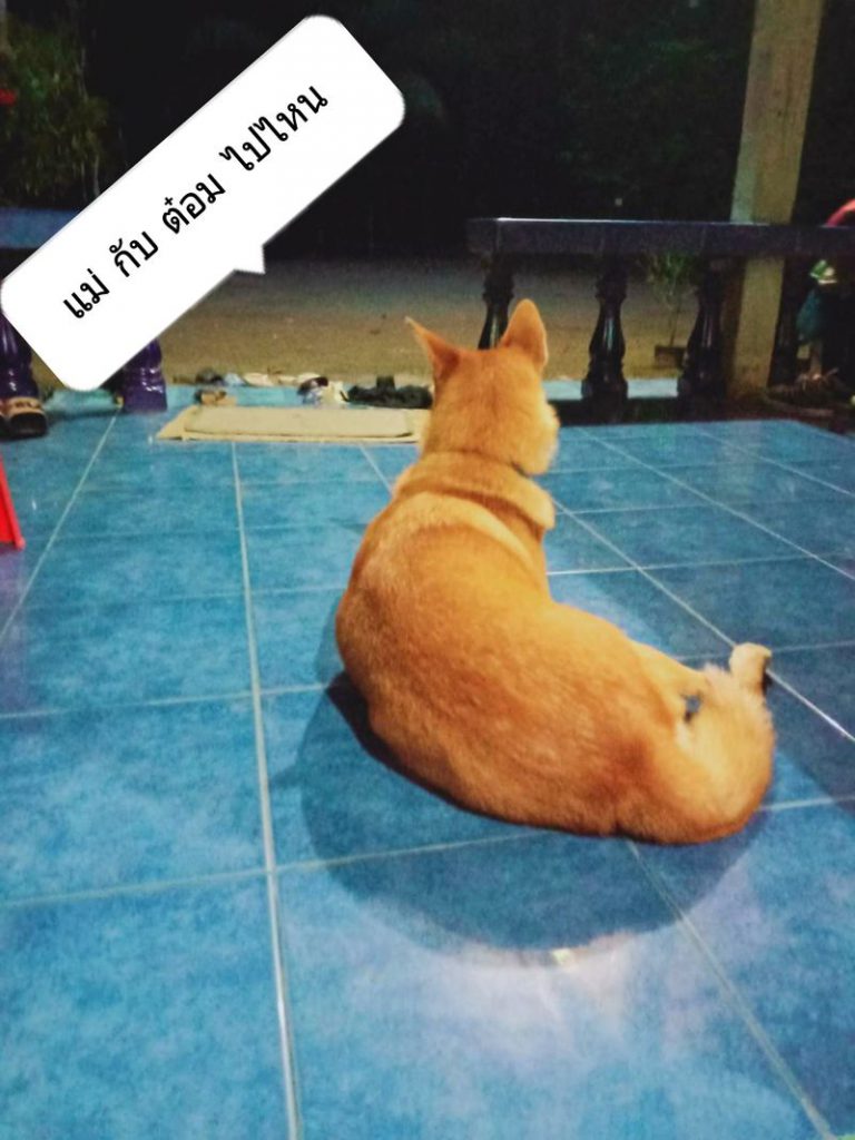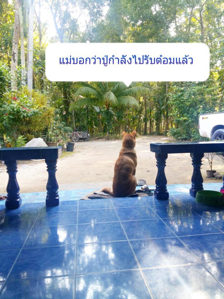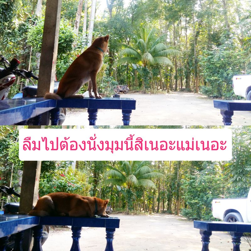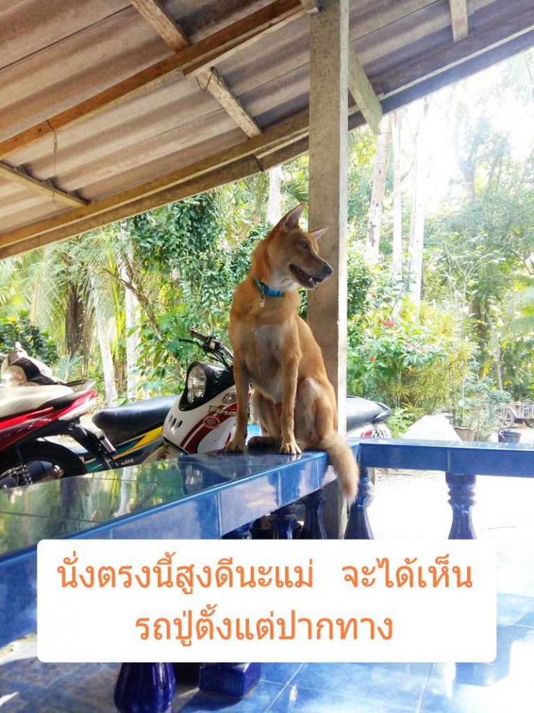 ดูไปดูมาเหมือนนางจะปรับสภาพตัวเองได้แล้ว นางคงคิดว่าเราให้นางอยู่ที่นั่นถาวรแน่ ๆ เลย เห็นเวลาหลานกลับจากโรงเรียนก็วิ่งออกมารับ เหมือนเวลาที่รอรับแฟนตอนเลิกงาน หลานจะไปร้านค้าซื้อขนมนางก็จะตาม จนต้องผูกล่ามไว้ชั่วคราว ติดหนึบกับหลานเลยที่นี่ หรือจะให้อยู่ที่นั่นถาวรไปเลยดีน้อ