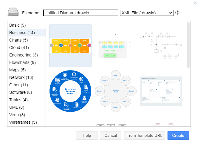 และการใช้งานก็ไม่ยากมาก ยิ่งถ้าเราเคยใช้โปรแกรมพวก Visio มาด้วยแล้วจะง่ายกว่ามาก เพียงลากวาง ๆ โดยเทมเพลทที่มีให้เลือกได้แก่